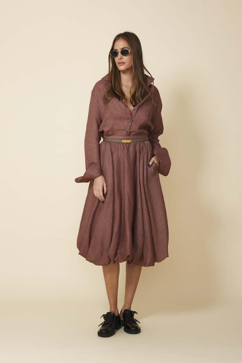 HOME - CLOTHING - Skirts - Midi-Balloon Brown Midi Skirt - Pre-Spring26