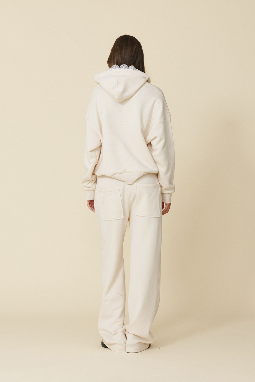 Beige Oversized Sweatshirt With Lace Inserts - FW25