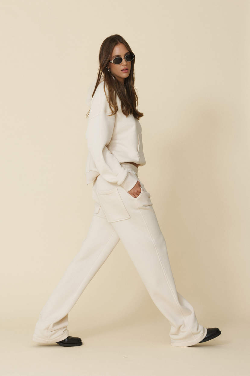 HOME - CLOTHING - Tops - Sweatshirt-Beige Oversized Sweatshirt With Lace Inserts - FW25