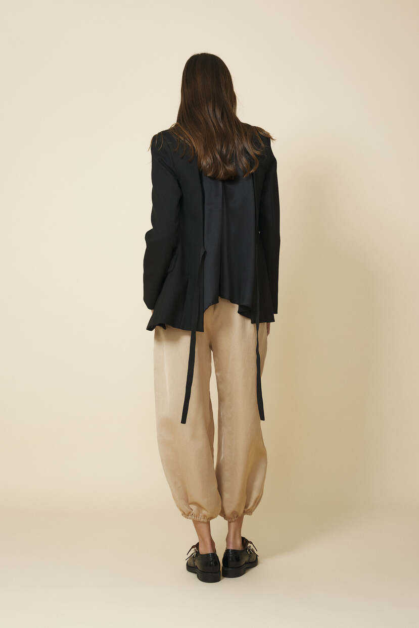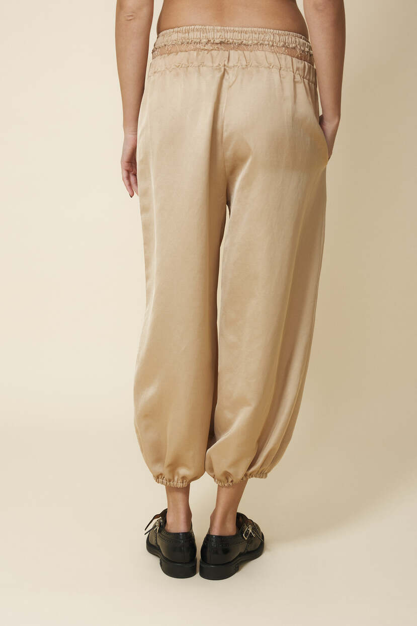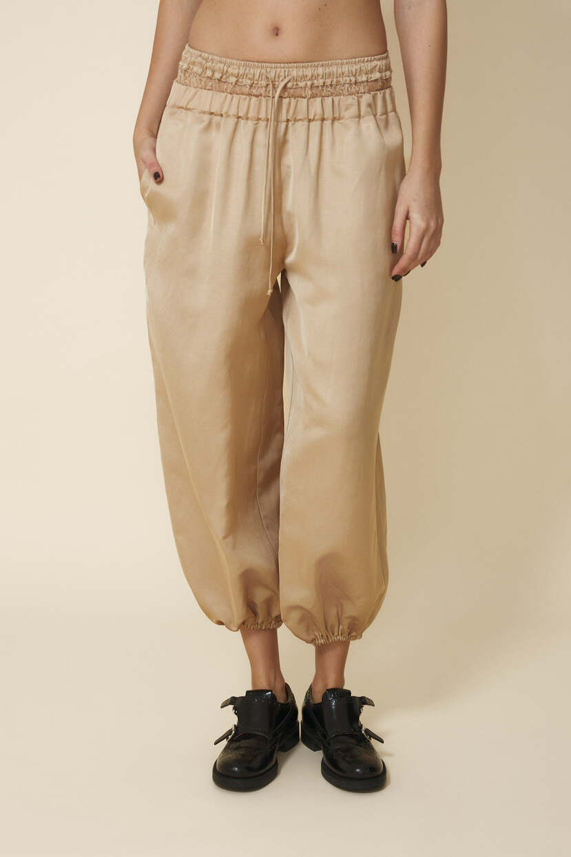 HOME - CLOTHING - Pants - Casual-Beige Viscose Pants With Lace Insert At The Waistband - Pre-Spring26