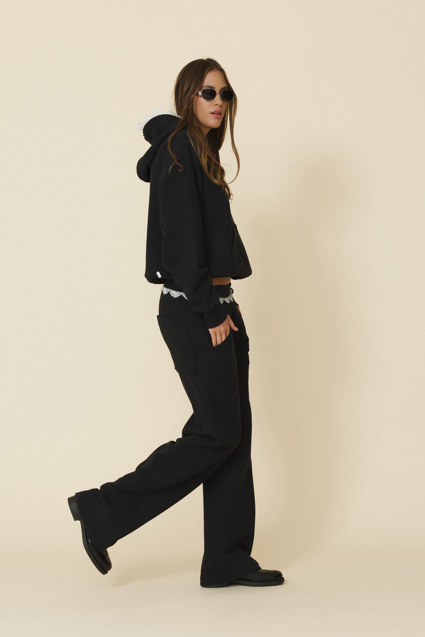 Black Oversized Sweatshirt With Lace Inserts - FW25