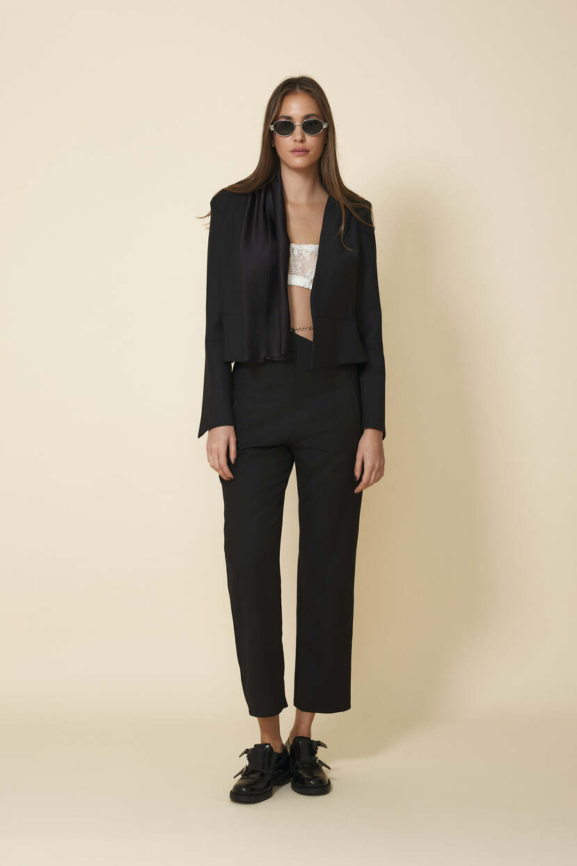 HOME - CLOTHING - Pants - Casual-Black Wool Pants With Chain Detail at the Waist