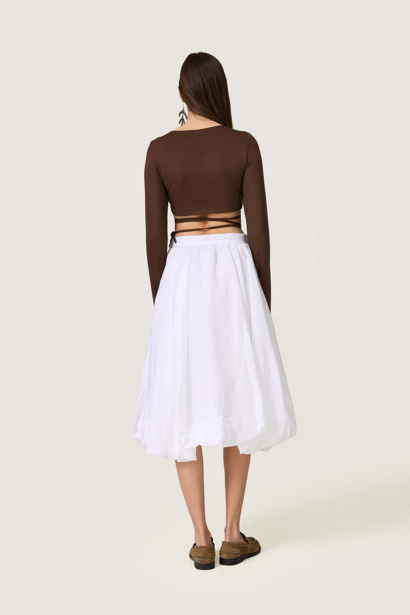 Brown Cropped Blouse With a Front Cut-Out Detail And Adjustable Lace-Up Tie - SS26