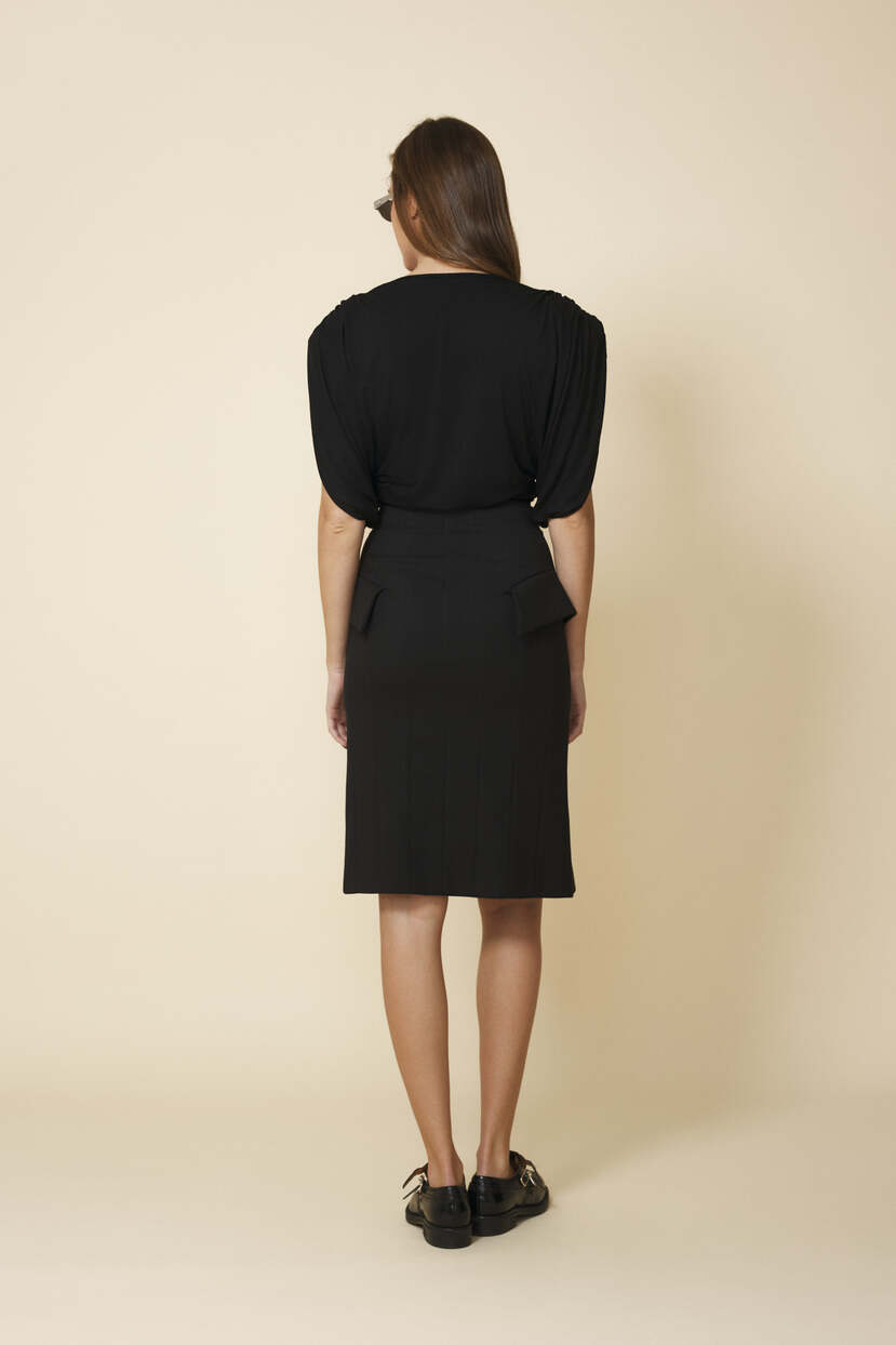 HOME - CLOTHING - Tops - Blouses-Oversized Shoulders Black Top