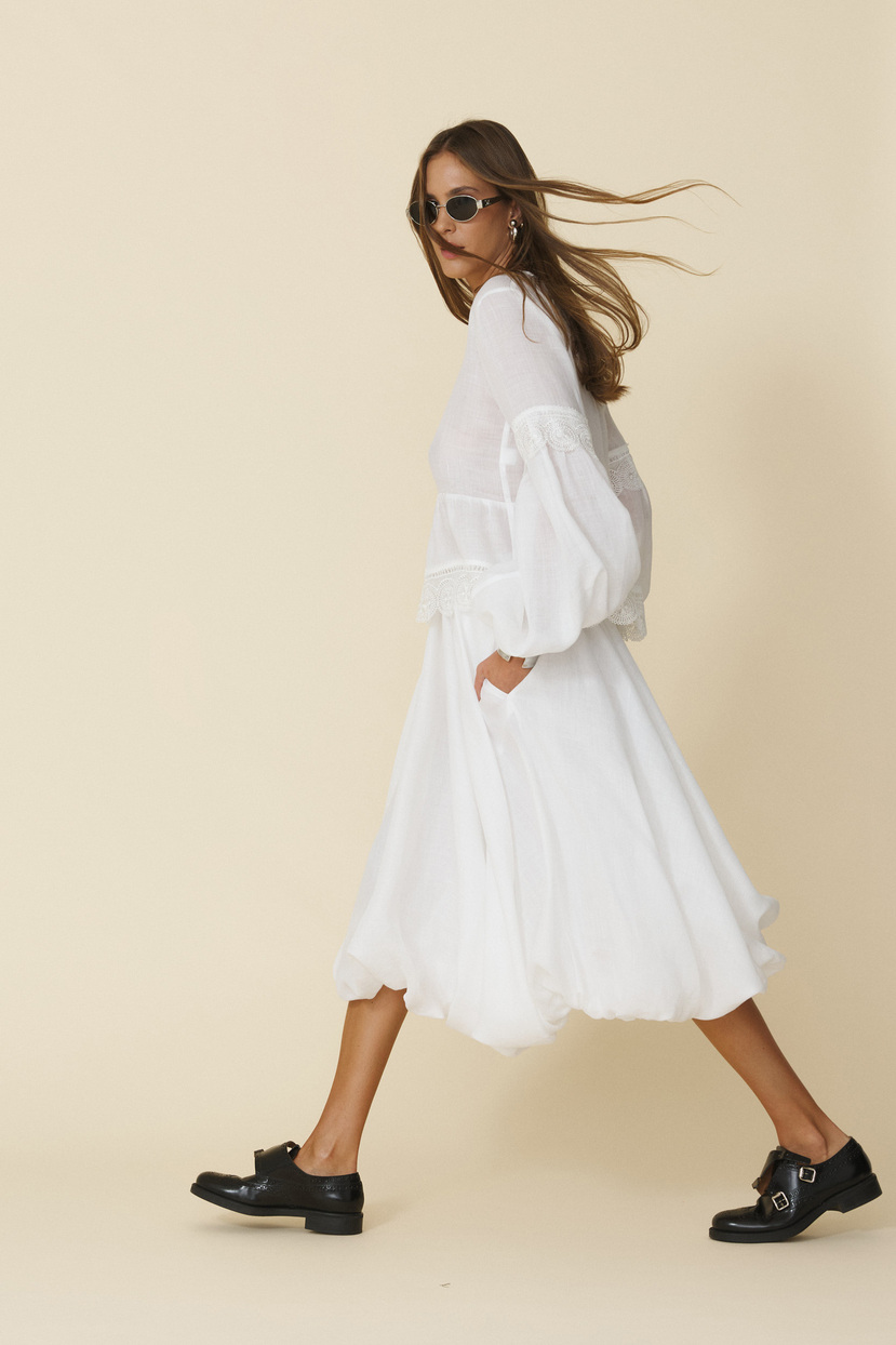 White Blouse With Lace Inserts - FW25